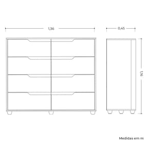 A Cômoda Doble é moderna e funcional. Possui 8 gavetas para manter suas roupas e objetos pessoais mais organizados. Seu design garantirá mais beleza ao seu ambiente.