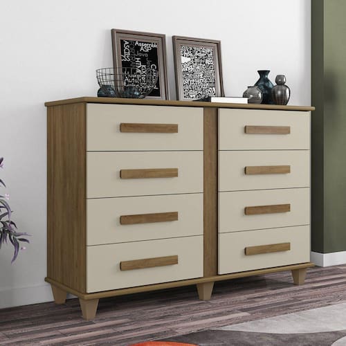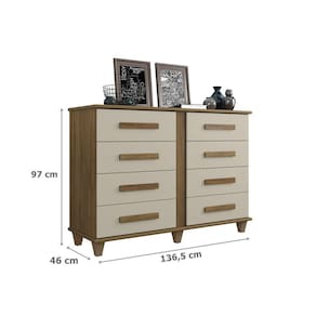 A Cômoda Geórgia possui um design elegante e charmoso, com excelente espaço e pode ser utilizado tanto no quarto, quanto no closet. Características: Estrutura em MDF e MDP 8 Gavetas Tampo e base em MDF 18mm Corrediças telescópicas Puxadores em MDF Produto Montado: Sim Acabamento da Gaveta: Pintura Acabamento dos Pés: Pintura Altura dos Pés: 5 cm Ambiente Principal: Quarto codigo_ean: 7909903319475 Complexidade da Montagem: Média: pode ser montado por mais de uma pessoa e/ou necessite de maior conhecimento para montagem Cor: Cinamomo/Off White Cor do Produto: Cinamomo/Off White Cor Flex: Não Cor Interna: Cinamomo Escala de Brilho: Fosco Escala de Brilho da Gaveta: Fosco Gaveta com Chave: Não Itens Inclusos: 1 Cômoda, Kit Ferragens e Manual de Montagem Linha ou Coleção: Geórgia Manual de Montagem e Instalação: https://product-hub-prd.madeiramadeira.com.br/852642/documents/ac33ebc6-67d6-4bce-900d-02af655e65bbuemademontagemcmodageorgia.pdf Material da Gaveta: MDF/MDP Material do Fundo: mdf Material do Puxador da Gaveta: MDF Material dos Pés: Plástico Material Principal: MDF/MDP Montagem Flex: Não Necessita Montagem: Sim Origem do Produto: Nacional Pés Reguláveis: Não Peso: 69 kg Peso Máximo por Gaveta: 5 kg Possui Espelho: Não Possui Nichos: Não Possui Pés: 06 Possui Portas: Não Possui Prateleiras: Não Possui Rodízio: Não Quantidade de Gavetas: 08 Gavetas Recomendações de Uso, Manutenção e Limpeza: Usar pano macio, seco ou ligeiramente umedecido com água. Não utilizar produtos químicos pois podem danificar o produto Sapatas Niveladoras: Não Sistema de Montagem: Parafusos, Cavilhas e Minifix Suporta Até (kg): 65 kg Tipo de Corrediça da Gaveta: Metálica Telescópica Tipo de Puxador da Gaveta: Externo undefined: 817943