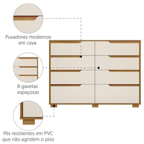 DIFERENCIAL: 8 gavetas espaçosas com puxadores modernos em estilo Cava, amplo espaço interno, acabamento em pintura UV que dá mais resistência e durabilidade ao produto.