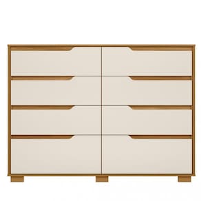 A Cômoda Georgia é um móvel espaçoso e funcional, oferecendo ampla capacidade de armazenamento. Possui um total de oito gavetas, As corrediças telescópicas permitem um deslizamento suave e fácil das gavetas, proporcionando acesso conveniente e organização eficiente do conteúdo armazenado. Esta configuração é ideal para quem precisa de uma solução de armazenamento versátil e diversificada, permitindo a organização de uma variedade de itens, desde roupas a acessórios, de maneira prática e acessível.