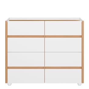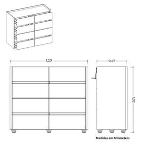 A Cômoda 8 Gavetas Infinite Albatroz, com design moderno e cantos arredondados. Fabricada em MDP de 12 e 15mm, possui fundo em HDF de 3mm. As gavetas contam com corrediças telescópicas e suportam até 5kg cada. O tampo resiste a até 15kg. Para maior segurança, acompanha kit anti-tombamento -evita que a cômoda tombe- e possui pés para melhor estabilidade.