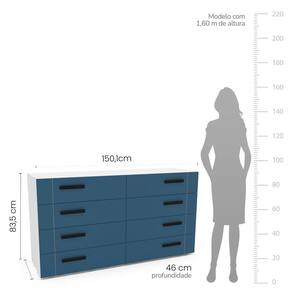 Cômoda 8 Gavetas Lisboa Politorno Móveis Branco/Azul - Azul Doce