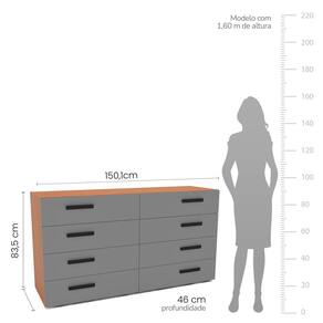 A cômoda 8 gavetas Lisboa, da Politorno Móveis, é a escolha perfeita para quem busca qualidade, elegância e funcionalidade. Com 83,5 cm de altura, 150 cm de largura e 46 cm de profundidade, oferece amplo espaço para organização. Fabricada em MDP/MDF, com acabamento em pintura UV, garante durabilidade e resistência. Seu design sofisticado e atemporal combina com diversos estilos de decoração, oferecendo um toque refinado ao ambiente. As gavetas possuem corrediças telescópicas, proporcionando deslizamento suave e preciso, e os puxadores externos agregam praticidade. Ideal para quem deseja um móvel de alta qualidade, que une beleza, resistência e funcionalidade. Produto Montado: Sim Acabamento da Gaveta: Pintura UV Acabamento dos Pés: Polipropileno Altura dos Pés: 0,37 cm Altura Máxima dos Pés: 0.3700 Ambiente Principal: Quarto codigo_ean: 7900288111401 Complexidade da Montagem: Média: pode ser montado por mais de uma pessoa e/ou necessite de maior conhecimento para montagem Cor: Freijó/Cinza Cor do Produto: Freijó/Cinza Cor do Puxador: Preto Cor Interna: Freijó Escala de Brilho: Semi-Fosco Escala de Brilho da Gaveta: Semi-Fosco Gaveta com Chave: Não Itens Inclusos: 1 Cômoda, Kit de Ferragens e Manual de Montagem. Linha ou Coleção: Lisboa Manual de Montagem e Instalação: https://product-hub-prd.madeiramadeira.com.br/984307/documents/fb234515-5eb6-47bf-873f-6a35c8c7269f2785414622417437706287255.pdf Marca: Politorno Material da Gaveta: MDF/MDP Material do Fundo: MDF/MDP Material do Puxador da Gaveta: MDF Material dos Pés: Plástico Material Principal: MDF/MDP Necessita Montagem: Sim Origem do Produto: Nacional Pés Reguláveis: Não Peso: 49,4 kg Peso Máximo por Gaveta: 5 kg Possui Espelho: Não Possui Nichos: Não Possui Pés: 06 Possui Portas: Não Possui Prateleiras: Não Possui Rodízio: Não Quantidade de Gavetas: 08 Gavetas Recomendações de Uso, Manutenção e Limpeza: Utilize um pano macio umedecido com água e sabão neutro, seguido de pano seco. Não utilize produtos químicos ou abrasivos para limpeza, pois estes danificam o revestimento do móvel. Sapatas Niveladoras: Sim Sistema de Montagem: Cavilha, Parafuso, Minifix e prego Suporta Até (kg): 60 kg Tipo de Cômoda: Adulto Tipo de Corrediça da Gaveta: Metálica Telescópica Tipo de Puxador da Gaveta: Externo