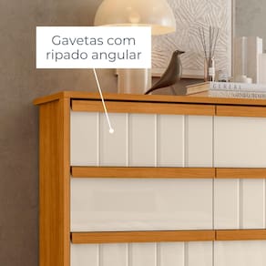 MDFCom design contemporâneo e acabamento sofisticado, a Cômoda Tarsila une o melhor dos dois mundos: estética e organização. Com suas gavetas ripadas com ângulo, que imprimem charme e modernidade ao móvel; peça composta por 8 gavetas que garantem que tudo ficará bem armazenado. Conta ainda com corrediças telescópicas garantem abertura suave e eficiente, suportando até 3kg cada uma.
