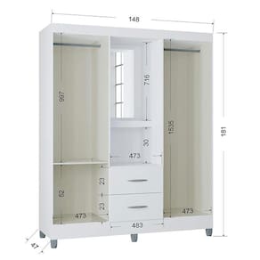 Guarda Roupa Solteiro Cordoba 4 Portas Branco Brilho - Poquema