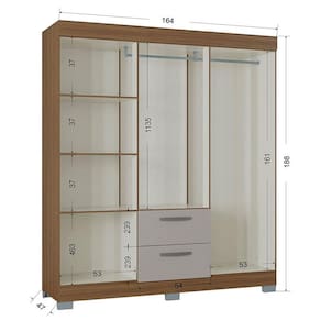 Guarda Roupa Casal Tóquio 6 Portas Castanho Off White - Poquema