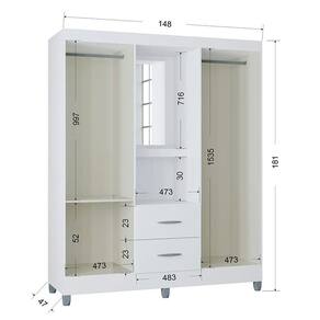 Guarda Roupa Solteiro Cordoba 4 Portas Branco Brilho - Poquema