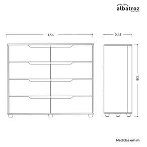 A Cômoda Doble é moderna e funcional. Dispõe de 8 gavetas para manter suas roupas e objetos pessoais mais organizados. Possui reforço estrutural e os puxadores são em formato cava. Seu design garantirá mais beleza ao seu ambiente.