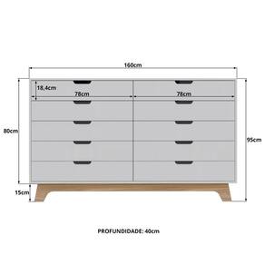 Organização sem complicação. A Cômoda Alice 10 gavetas é para quem precisa de espaço sem abrir mão de um design limpo e funcional. Com linhas retas e um visual minimalista, ela se adapta facilmente a qualquer ambiente, trazendo praticidade sem excessos. Feita em MDF de 1,5cm, com fundos de 6cm e acabamento em BP resistente a riscos e manchas, ela é durável e fácil de manter. Suas dez gavetas espaçosas garantem um lugar certo para tudo, tornando o dia a dia mais organizado e descomplicado. Produto Montado: Sim Acabamento da Gaveta: Melamínico Acabamento dos Pés: Melamínico Altura dos Pés: 15 cm Altura Máxima dos Pés: 15.0000 Ambiente Principal: Quarto codigo_ean: 7900288090621 Complexidade da Montagem: Média: pode ser montado por mais de uma pessoa e/ou necessite de maior conhecimento para montagem Cor: Louro Freijó Grann/Branco Cor do Produto: Louro Freijó Grann/Branco Cor Flex: Não Cor Interna: Branco Escala de Brilho: Fosco Escala de Brilho da Gaveta: Fosco Gaveta com Chave: Não Itens Inclusos: 1 Cômoda + Kit de Ferragens + Manual de Montagem. Linha ou Coleção: Móveis para quarto Manual de Montagem e Instalação: https://product-hub-prd.madeiramadeira.com.br/980840/documents/a64b2b0d-e7ce-40e7-b125-ed492755e0522740400579517418032347939.pdf Marca: FD Material da Gaveta: MDF Material dos Pés: MDF Material Principal: MDF Necessita Montagem: Sim Origem do Produto: Nacional Pés Reguláveis: Não Peso: 58,59 kg Peso Máximo por Gaveta: 5 kg Possui Espelho: Não Possui Nichos: Não Possui Pés: 04 Possui Portas: Não Possui Prateleiras: Não Possui Rodízio: Não Quantidade de Gavetas: 10 Gavetas Recomendações de Uso, Manutenção e Limpeza: Limpar somente com um pano levemente umedecido. Indicado para ambientes internos Sapatas Niveladoras: Não Sistema de Montagem: Parafusos, cavilhas e minifix Suporta Até (kg): 50 kg Tipo de Cômoda: Adulto Tipo de Corrediça da Gaveta: Metálica Telescópica Tipo de Puxador da Gaveta: Embutido
