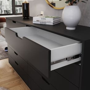 Organização sem complicação. A Cômoda Alice 10 gavetas é para quem precisa de espaço sem abrir mão de um design limpo e funcional. Com linhas retas e um visual minimalista, ela se adapta facilmente a qualquer ambiente, trazendo praticidade sem excessos. Feita em MDF de 1,5cm, com fundos de 6cm e acabamento em BP resistente a riscos e manchas, ela é durável e fácil de manter. Suas dez gavetas espaçosas garantem um lugar certo para tudo, tornando o dia a dia mais organizado e descomplicado. Produto Montado: Sim Acabamento da Gaveta: Melamínico Acabamento dos Pés: Melamínico Altura dos Pés: 15 cm Altura Máxima dos Pés: 15.0000 Ambiente Principal: Quarto codigo_ean: 7900288090638 Complexidade da Montagem: Média: pode ser montado por mais de uma pessoa e/ou necessite de maior conhecimento para montagem Cor: Preto/Louro Freijó Grann Cor do Produto: Preto/Louro Freijó Grann Cor Flex: Não Cor Interna: Branco Escala de Brilho: Fosco Escala de Brilho da Gaveta: Fosco Gaveta com Chave: Não Itens Inclusos: 1 Cômoda + Kit de Ferragens + Manual de Montagem. Linha ou Coleção: Móveis para quarto Manual de Montagem e Instalação: https://product-hub-prd.madeiramadeira.com.br/980844/documents/9cf0590a-a184-4b4a-ac48-edfea9ad4ebf2740400579517418032347939.pdf Marca: FD Material da Gaveta: MDF Material dos Pés: MDF Material Principal: MDF Necessita Montagem: Sim Origem do Produto: Nacional Pés Reguláveis: Não Peso: 58,59 kg Peso Máximo por Gaveta: 5 kg Possui Espelho: Não Possui Nichos: Não Possui Pés: 04 Possui Portas: Não Possui Prateleiras: Não Possui Rodízio: Não Quantidade de Gavetas: 10 Gavetas Recomendações de Uso, Manutenção e Limpeza: Limpar somente com um pano levemente umedecido. Indicado para ambientes internos Sapatas Niveladoras: Não Sistema de Montagem: Parafusos, cavilhas e minifix Suporta Até (kg): 50 kg Tipo de Cômoda: Adulto Tipo de Corrediça da Gaveta: Metálica Telescópica Tipo de Puxador da Gaveta: Embutido