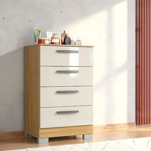 Cômoda Alice 4 Gavetas Poquema Damasco/off White A Comoda Alice Poquema e ideal para quem busca manter o ambiente organizado sem abrir mao de um visual moderno e versatil. Com design que se adapta facilmente a diferentes estilos de decoracao, ela oferece praticidade para o dia a dia e contribui para um espaco mais funcional e elegante. Suas gavetas proporcionam otimo aproveitamento interno, enquanto o acabamento uniforme facilita a limpeza e a conservacao, tornando o movel uma escolha eficiente para quartos, closets e outros ambientes residenciais. Caracteristicas