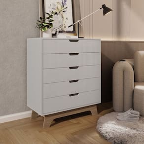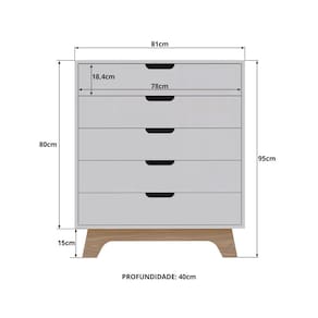 Simplicidade que faz a diferença. A Cômoda Alice 5 gavetas aposta no essencial: um design minimalista, funcional e adaptável a qualquer espaço. Com estrutura em MDF de 1,5cm, fundos de 6mm e revestimento BP, ela é resistente ao uso diário e fácil de limpar. Suas gavetas deslizantes oferecem o espaço ideal para manter roupas e objetos organizados, sem ocupar mais espaço do que o necessário. Um móvel prático e discreto, perfeito para quem valoriza a organização sem abrir mão da leveza visual. Produto Montado: Sim Acabamento da Gaveta: Melamínico Acabamento dos Pés: Melamínico Altura dos Pés: 15 cm Altura Máxima dos Pés: 15.0000 Ambiente Principal: Quarto codigo_ean: 7900288090393 Complexidade da Montagem: Média: pode ser montado por mais de uma pessoa e/ou necessite de maior conhecimento para montagem Cor: Branco/Louro Freijó Grann Cor do Produto: Branco/Louro Freijó Grann Cor Flex: Não Cor Interna: Branco Escala de Brilho: Fosco Escala de Brilho da Gaveta: Fosco Gaveta com Chave: Não Itens Inclusos: 1 Cômoda + 1 Kit de Ferragens + 1 Manual de Montagem Linha ou Coleção: Móveis para quarto Manual de Montagem e Instalação: https://product-hub-prd.madeiramadeira.com.br/980884/documents/23d9516b-9891-4030-9ebf-b78c6f9d78932740798579517418070822627.pdf Marca: FD Material da Gaveta: MDF Material dos Pés: MDF Material Principal: MDF Necessita Montagem: Sim Origem do Produto: Nacional Pés Reguláveis: Não Peso: 42,7 kg Peso Máximo por Gaveta: 5 kg Possui Espelho: Não Possui Nichos: Não Possui Pés: 04 Possui Portas: Não Possui Prateleiras: Não Possui Rodízio: Não Quantidade de Gavetas: 05 Gavetas Recomendações de Uso, Manutenção e Limpeza: Limpar somente com um pano levemente umedecido. Indicado para ambientes internos Sapatas Niveladoras: Não Sistema de Montagem: Parafusos, cavilhas e minifix Suporta Até (kg): 25 kg Tipo de Cômoda: Adulto Tipo de Corrediça da Gaveta: Metálica Telescópica Tipo de Puxador da Gaveta: Embutido