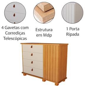 Dimensões da Cômoda Ripada para Quarto 4 Gavetas: