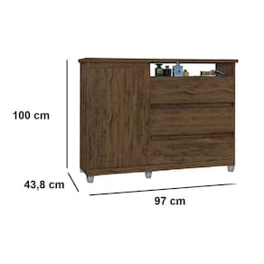 Aliada da organização do seu dormitório, a Cômoda Sky é a peça que faltava para garantir um dia a dia mais otimizado e um ambiente bem decorado. Ela pode ter o uso compartilhado com o do guarda-roupa já que as gavetas se reservam para peças menores e dobráveis, mas se o seu cômodo é pequeno, ela também vai bem como a protagonista para deixar tudo sempre à mão. Ah, além do visual charmoso que ajuda na composição do lar-style, a peça ainda tem um amplo tampo para você dispor cosméticos, enfeites ou outros itens pertinentes à sua rotina. Agora é só combiná-la com o restante do mobiliário e conquistar o quarto dos seus sonhos! Descrição do Tamanho Altura: 100 cm Largura: 97 cm Profundidade: 43,8 cm Características: Número de portas : 1 Porta Número de gavetas: 3 Gavetas Tipo de pé: Fixo de PVC Acabamento: Fosco Material da dobradiça/trilho da porta Metal Material da estrutura MDP Espessura do material da estrutura (mm) 12 Número de nichos: 1 Número de pés 6 Peso suportado máximo (kg) 60 Atenção! - Confira as dimensões deste produto e certifique-se de que passará normalmente por supostos elevadores, portas, escadas e/ou corredores de sua moradia; - As imagens são ilustrativas, eletrodomésticos e demais objetos que compõem o cenário, não fazem parte do anúncio; - Sobre a tonalidade das cores, poderá ocorrer alterações conforme a configuração do seu monitor. - Orientamos que a montagem e instalações do produto seja realizado por um técnico de sua confiança, após a sua entrega. - Oferecemos retirada em nossa loja Saimys Móveis na Av. Ragueb Chohfi, °3411 (08341-420) para não haver custo de envio.