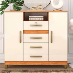 O(a) Cômoda Angra 2 Portas 4 Gavetas Cinamomo/Off White - Fellicci é produzido em MDP na escala de brilho Brilho e Semi-Brilho, e possui um grau de dificuldade de montagem: Médio.