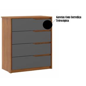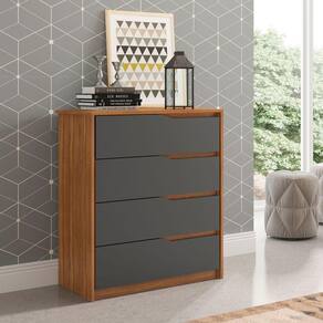 Cômoda para Quarto 4 Gavetas Aria Amêndola/Grafito -