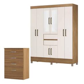 Cômoda Astral e Guarda Roupa Casal Munique Amêndola Off White com Espelho - Demóbile