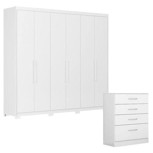 Cômoda Astral e Guarda Roupa Casal Venice 62480PE Branco Brilho com Pés - Demóbile