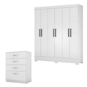 Cômoda Astral e Guarda Roupa Casal Verso Branco - Demóbile