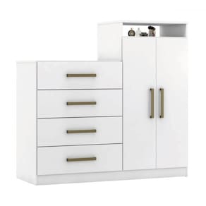 O(a) Cômoda áurea 2 Portas 4 Gavetas Branco - Demóbile é produzido em MDP na escala de brilho Brilho e Fosca com Textura, e possui um grau de dificuldade de montagem: Médio.