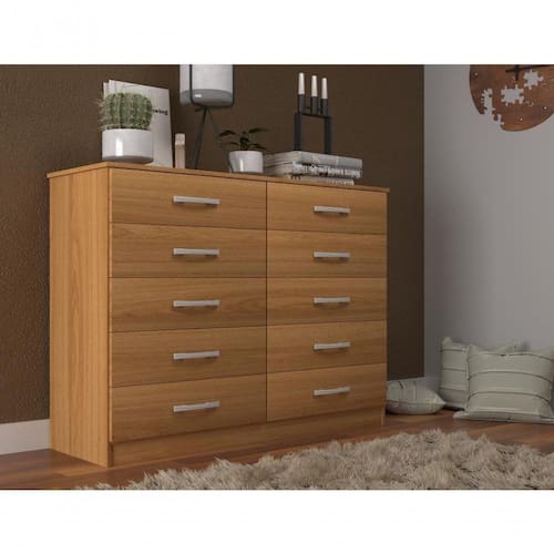 Cômoda Austin 10 Gavetas Cinnamomo - Cinnamomo Cinnamomo Cômoda Austin 10 Gavetas É fabricado 100% em MDP, conta com excelentes repartições e amplo espaço para você organizar roupas, calçados e objetos pessoais. Moderna e elegante tem 10 gavetas que proporcionam maior amplitude para organizar peças e objetos pessoais. Acabamento interno na mesma cor do móvel reúne harmoniosamente beleza, qualidade e durabilidade. Pesos e Dimensões Altura (cm) 93 cm Largura (cm) 123 cm Profundidade (cm) 40 cm Peso (kg) 41 kg