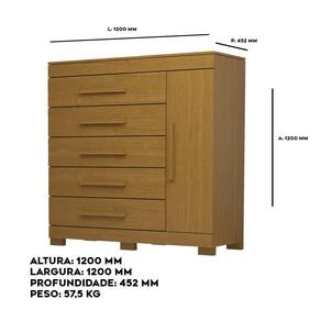 Desfrute da elegância e praticidade da cômoda Bahamas, feita com 100% de MDF de alta qualidade. Com 5 gavetas equipadas com corrediças telescópicas suaves, você terá acesso rápido e fácil aos seus pertences. Além disso, possui um espaçoso sapateiro integrado para manter seus calçados organizados. Os puxadores em MDF revestido complementam o design sofisticado, proporcionando um toque de estilo a cada detalhe. Experimente a combinação perfeita de funcionalidade e beleza com a cômoda Bahamas.