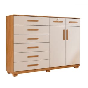 O(a) Cômoda Bali 8 Gavetas 2 Portas Cinamomo/Off White - Pnr Móveis é produzido em MDP na escala de brilho Fosco, e possui um grau de dificuldade de montagem: Médio.