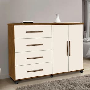 A Primus Móveis vem trazendo uma linha mais inovadora e com qualidade para sua casa, dentre eles essa linda Cômoda Bali, com design moderno e sofisticado agregando charme e beleza ao ambiente. A cômoda contém quatro gavetas de amplo espaço interno, e com corrediça telescópicas, facilitando sua abertura sem enrosco. Para maior organização acompanha sapateira com duas portas.