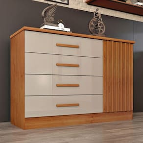 O(a) Cômoda Barcelona 1 Porta 4 Gavetas Cinamomo/Off White - Tcil Móveis é produzido em MDF e MDP na escala de brilho Fosco e Semi-Brilho, e possui um grau de dificuldade de montagem: Médio.