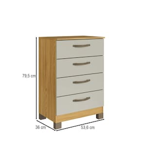 O(a) Cômoda Basic 4 Gavetas Ipê/Cristalo - Decibal é produzido em MDP na escala de brilho Fosco, e possui um grau de dificuldade de montagem: Médio.