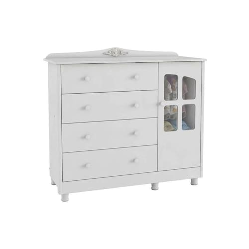 Cômoda Bebê Elô C/ 1 Porta Cristal E 4 Gavetas Branco - Peroba