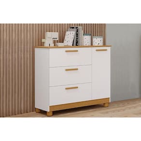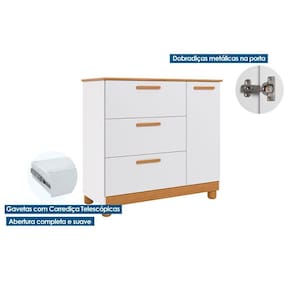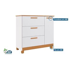 Cômoda Infantil Jujuba 1 Porta e 3 Gavetas Nature/Branco - Permóbili Baby