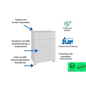 Cômoda Infantil Júnior c/ 4 Gavetas Branco/Amendoa - Peroba