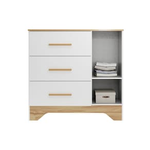 Fabricada em MDF; Pintura UV atóxica; puxadores em MDF;corrediças telescópicas;