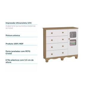 Cômoda Infantil Uli c/ 1 Porta Cristal e 4 Gavetas Branco/Amendoa - Peroba Marca: Móveis Peroba