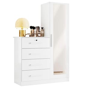 ESPECIFICAÇÕES: Estrutura em MDP Pintura UV Tampo de MDF usinado com pintura de borda 1 Porta Dobradiças metálicas 4 Gavetas Corrediças telescópicas 1 Gaveta com chave Prateleiras internas Puxadores em MDF revestidos Espelho parafusado na porta A x P: 120 x 0,3 cm Amplo espaço interno