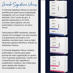 Modelo: Venus Material: MDP resistente e durável Cor principal: Branca Detalhes coloridos opcionais incluídos (azul, rosa ou lilás) – uso opcional na montagem