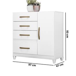 Cômoda Branca com 4 Gavetas e 1 Porta – Design Moderno e Versátil A Cômoda Venus é perfeita para quem busca organização, praticidade e um visual clean no quarto, closet ou até mesmo no ambiente infantil. Seu design neutro e funcional se adapta a diferentes estilos de decoração — seja para adultos, adolescentes ou crianças.