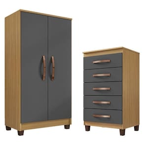 Cômoda Cannes 5 Gavetas com Armário Multiuso Recife Carvalho Americano Grafite - Incorplac