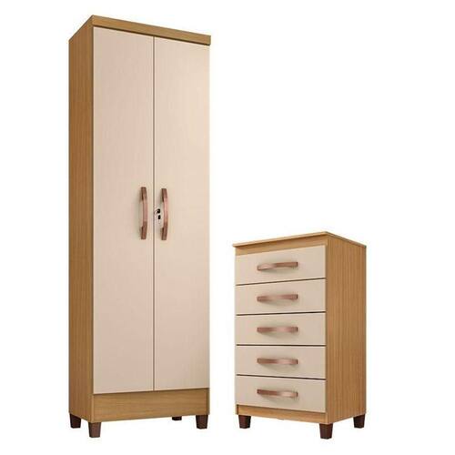 Cômoda Cannes 5 Gavetas e Armário Multiuso Egito Carvalho Americano Off White Incorplac