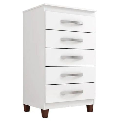 Cômoda Cannes 5 Gavetas - Incorplac Cor Branco A cômoda ideal para você, esta aqui! Apresentamos a Cômoda Gaveteiro da linha Cannes composta por 5 gavetas grandes e espaçosas que iram lhe auxiliar na hora de organizar suas roupas e acessórios, desenvolvida pela Incorplac com materiais de excelentes qualidades para maior durabilidade e resistência do móvel. Não deixe de aproveitar e garantir a sua! Características Técnicas: - Desenvolvido em MDP de 12mm - Acabamento em pintura texturizado - Possui 05 Gavetas suportando 3 Kg cada - Corrediças metálicas que deslizam livres de enrosco - Puxadores em PVC - Peso suportado pelo tampo é de 8 kg - Kit 04 pés de plástico - Lindo design