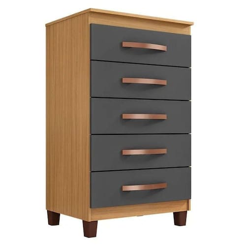 Cômoda Cannes 5 Gavetas - Incorplac Cor Carvalho Americano/grafite A cômoda ideal para você, esta aqui! Apresentamos a Cômoda Gaveteiro da linha Cannes composta por 5 gavetas grandes e espaçosas que iram lhe auxiliar na hora de organizar suas roupas e acessórios, desenvolvida pela Incorplac com materiais de excelentes qualidades para maior durabilidade e resistência do móvel. Não deixe de aproveitar e garantir a sua! Características Técnicas: - Desenvolvido em MDP de 12mm - Acabamento em pintura texturizado - Possui 05 Gavetas suportando 3 Kg cada - Corrediças metálicas que deslizam livres de enrosco - Puxadores em PVC - Peso suportado pelo tampo é de 8 kg - Kit 04 pés de plástico - Lindo design