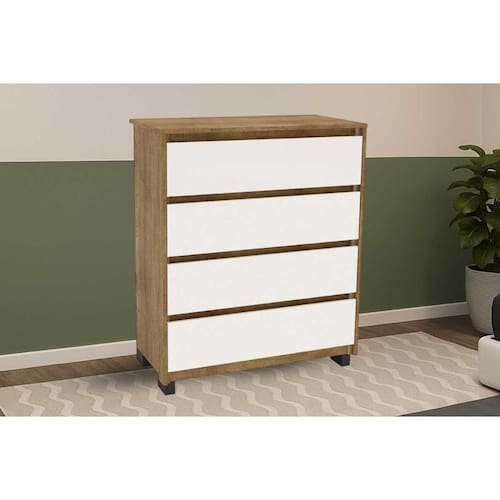 Cômoda de Quarto Coimbra c/ 4 Gavetas Freijo/Off White - Politorno