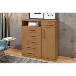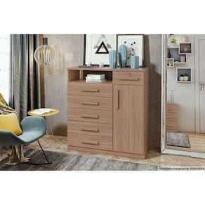 Cômoda de Quarto Da Vinci New c/ 1 Porta 1 Nicho e 6 Gavetas Rovere/Amêndoa - Lopas