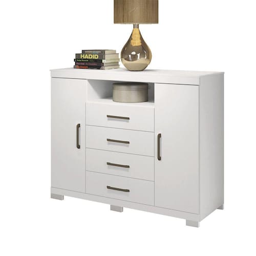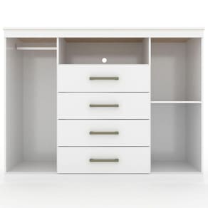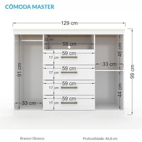 Esta cômoda é de uma proporção de espaço incrível! Possui duas portas: uma com cabideiro em alumínio, para pendurar: calças, camisas, camisetas...e a outra com prateleiras para guardar sapatos, caixas e demais objetos! Suas 04 amplas gavetas deslizam sobre corrediças metálicas com suavidade. E ainda possui espaço para colocar aparelhos eletrônicos e claro...uma TV sobre o tampo para sua comodidade (tampo suporta até 5 kg). São muitas funções em um só móvel!!! Características:01 Cabideiro em alumínio 04 Gavetas com corrediças metálicas Puxadores em ABS Dimensões:Altura: 99 cmLargura: 129 cmProfundidade: 46,8 cmPeso: 47,85 kg Medidas da gaveta: Altura: 10,1 cm Largura: 53,3 cm Profundidade: 35 cm Manutenção: Não limpar com álcool ou qualquer outro produto químico, utilize somente pano seco ou levemente umedecido.Garantia de Fábrica: 03 Meses (90 dias)