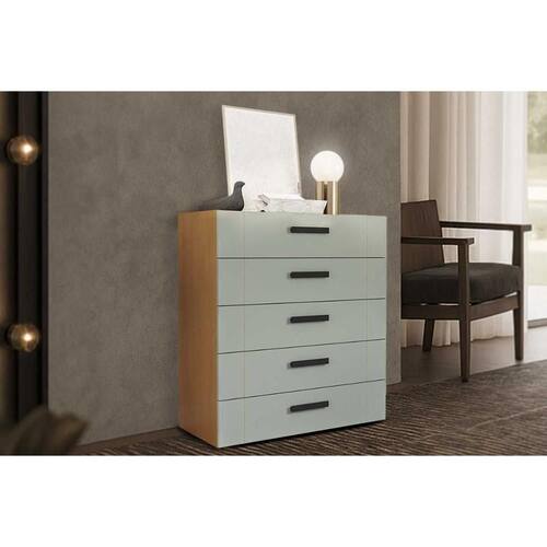 Cômoda de Quarto Lisboa c/ 5 Gavetas Freijo/Verde - Politorno