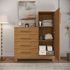 Cômoda Versátil com 4 Gavetas e Multiuso: Praticidade, Estilo e Muito Espaço! Deixe seu ambiente mais organizado e bonito com essa cômoda funcional e moderna! Produzida em MDP de alta qualidade e com acabamento em pintura UV, ela oferece resistência e um visual sofisticado para qualquer espaço da sua casa. Com 4 gavetas espaçosas com corrediças telescópicas, você tem muito mais praticidade e suavidade no dia a dia. Além disso, conta com um compartimento multiuso que pode ser utilizado como sapateira ou armário, ideal para quem busca versatilidade. Os puxadores e pés em PVC complementam o design com elegância e durabilidade, tornando este móvel uma excelente escolha para quartos ou salas compactas. A escolha certa para quem quer unir organização, estilo e funcionalidade em um só móvel.