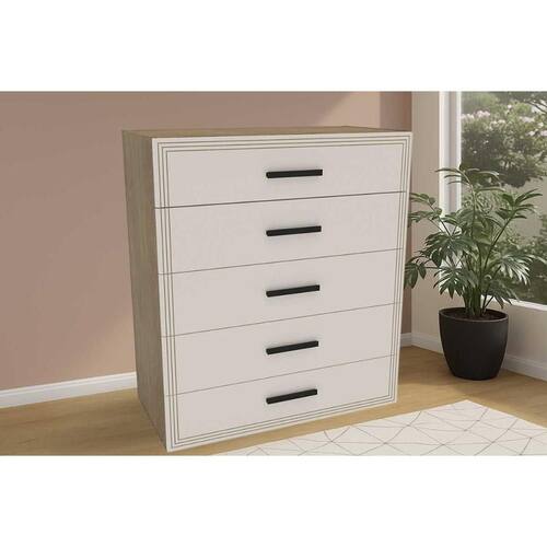 Cômoda de Quarto Valência c/ 5 Gavetas Freijo/Creme - Politorno