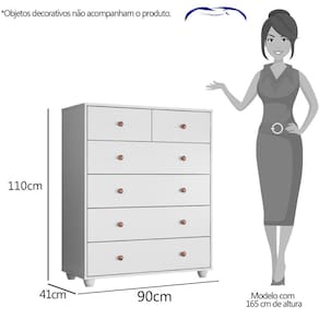 A Cômoda Vittória é para ambientes para você que procura uma decoração aconchegante. Toda em estrutura reta, com puxadores retrô, um luxo! Se encaixa perfeitamente no quarto casal ou solteiro, com muito espaço interno para guardar as roupas e pequenos objetos. Com 6 gavetas grandes, sendo 2 menores, corrediças telescópicas e travas de sustentação para as gavetas maiores. Toda estrutura em MDP, caixa e frentes em 15 mm, puxadores em ABS e parte interna 100% na cor do produto.