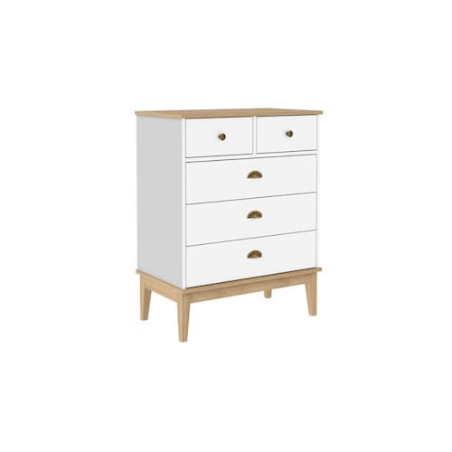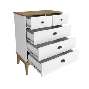 A cômoda MB 1020 possui estrutura em MDP 15mm e acabamento em pintura UV. Costas 3mm. Possui 5 gavetas com corrediças telescópicas, puxadores ponto e concha metálicos e que suportam 5kg cada e 4 pés em madeira maciça com altura de 20cm. Tampo em MDP 15mm. Produto suporta até 30kg. Conteúdo da embalagem: móvel, ferragens e manual de montagem. A fixação das peças e/ou acessórios é feita por parafusos, cavilhas e minifix. Para uma limpeza mais efetiva, utilizar apenas pano macio umedecido e sabão neutro. Não utilizar produtos abrasivos. Garantia de 03 meses contra defeitos de fabricação. Medidas do produto (AxLxP): 90x70x41cm. Peso do produto: 27,9kg. Marca: Não Informado